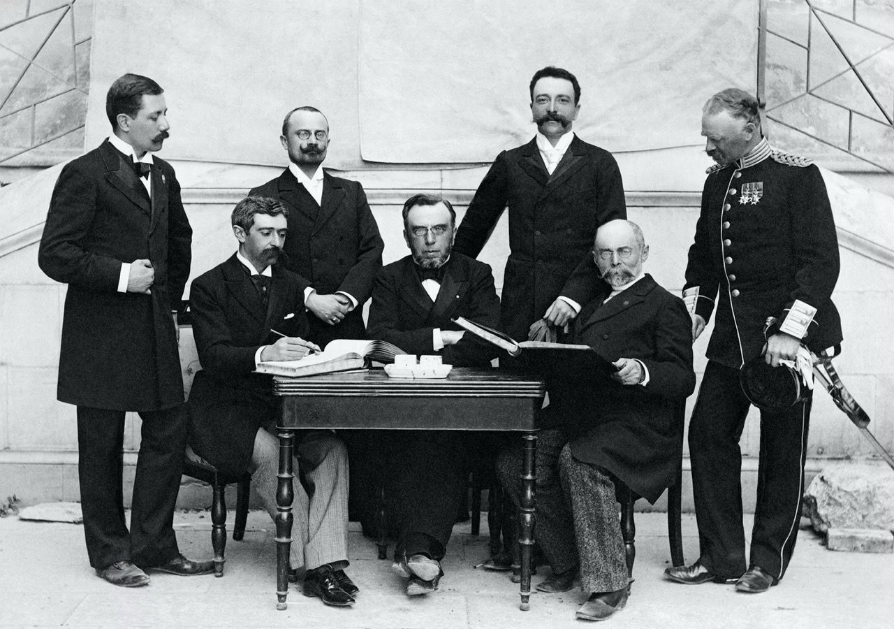 Sous l’impulsion de Pierre de Coubertin se tient, du 16 au 23 juin 1894, dans le grand amphithéâtre de la Sorbonne, le Congrès pour le rétablissement des Jeux olympiques, avec des représentants d’une douzaine de nations, en particulier de la Grande-Bretagne et des Etats-Unis. A la clôture, le 23 juin, Coubertin fonde le Comité international olympique (CIO) afin d’organiser tous les quatre ans - comme dans l’Antiquité - les Jeux olympiques modernes. Le siège social de cette entité transnationale, non gouvernementale, est fixée à Paris depuis sa naissance en 1894 jusqu’en 1915 : elle se déplace alors en Suisse, à Lausanne, en raison de la Première Guerre mondiale.