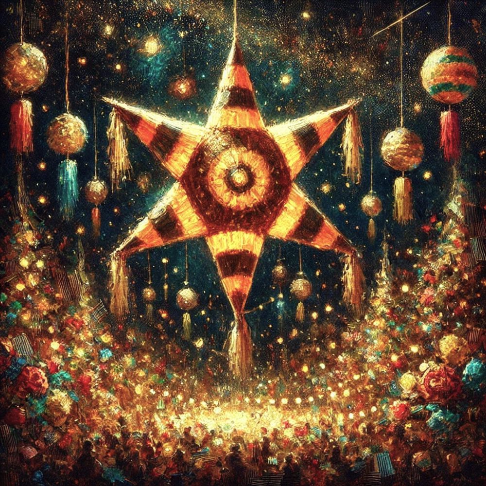 Après la traditionnelle demande d’hospitalité, c’est le moment de détruire les piñatas suspendues au plafond, pour le plus grand bonheur des enfants. Un acte anodin et amusant, mais hautement symbolique pour les Mexicains. La piñata est un pot de papier mâché ou d’argile, en forme d'étoile à sept branches. Les enfants ont les yeux bandés, et doivent, armés d’un bâton et guidés par les indications de leur entourage, détruire l’objet pour en libérer les récompenses. Symboliquement, les sept branches représentent les sept péchés capitaux ; le bâton, l’aide de Dieu ; les yeux bandés, la foi ; la piñata, le mal devant être vaincu ; les indications des proches, le soutien de l’Église ; la destruction finale, la victoire sur le péché ; et les friandises, la grâce de Dieu.
