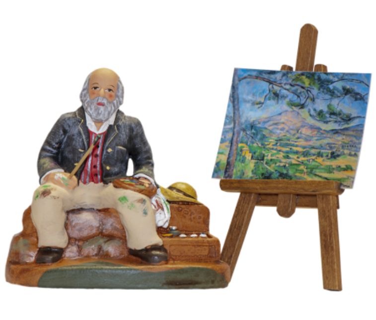 Le peintre Paul Cézanne a été représenté en santon par plusieurs santonniers d’Aix-en-Provence et de Marseille.