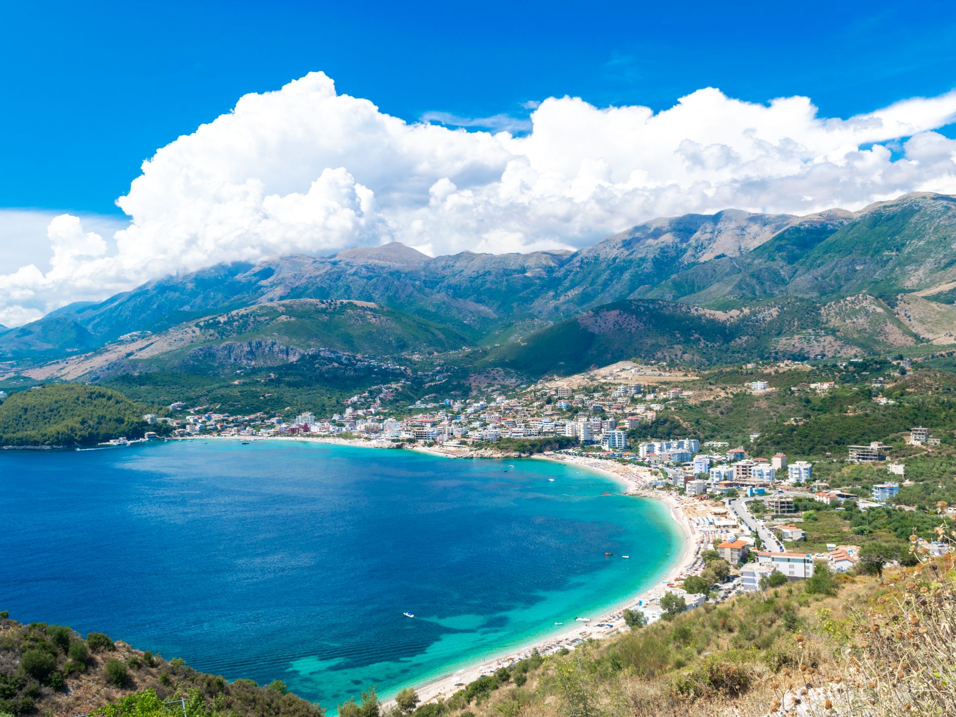 La côte sud-ouest, entre Vlora et Saranda, forme la Riviera albanaise, magnifique bande littorale escarpée bordée par la mer Ionienne. Cette région, longtemps difficile d’accès, connaît un développement touristique rapide. Des villages comme Dhërmi, Himarë ou Qeparo conservent une architecture traditionnelle en pierre, souvent d’inspiration gréco-byzantine. Le site archéologique de Butrint, au sud de Saranda, témoigne d’une occupation continue depuis la préhistoire jusqu’à la période vénitienne. Il s’agit d’un ancien centre grec, puis romain, aujourd’hui protégé par l’UNESCO.