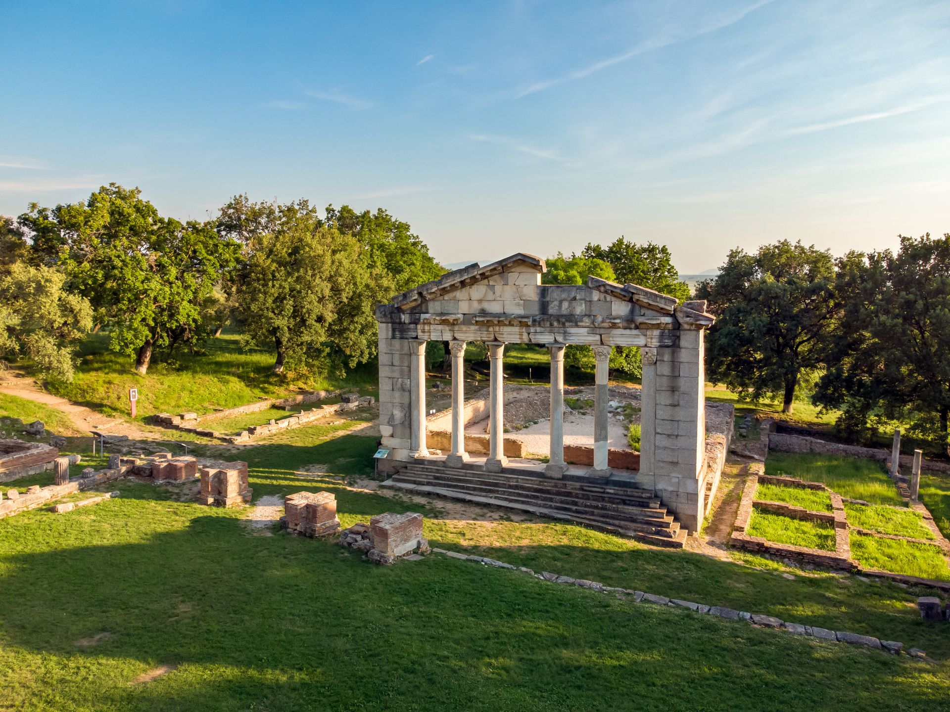Fondée au VIe siècle av. J.-C. par des colons grecs, Apollonia se trouve près de Fier, dans l’ouest de l’Albanie. C’était l’un des grands centres intellectuels et commerciaux de l’Illyrie durant l’Antiquité. Le site révèle un vaste ensemble de ruines : un bouleutérion (salle du conseil), une bibliothèque, des temples, une odeon, ainsi qu’un élégant portique de l’époque romaine. Apollonia a également été un lieu d’étude pour le jeune Octave, futur empereur Auguste. La beauté du paysage, entre collines et oliviers, accentue la solennité du lieu.