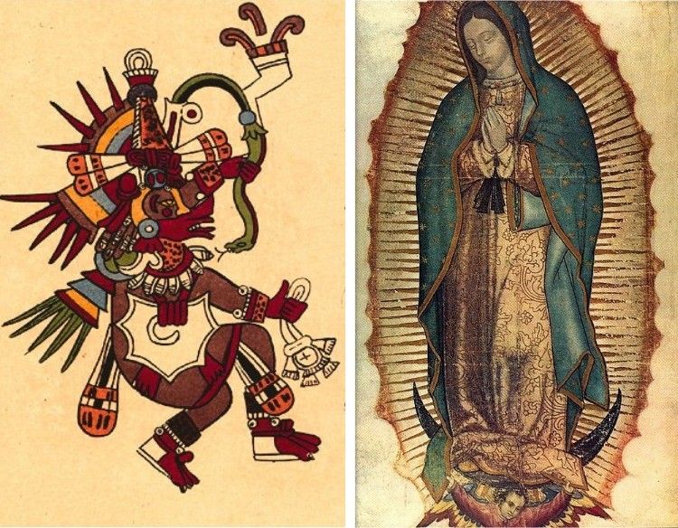 À la fin du XVe siècle, les voyages de Christophe Colomb amorcent les arrivées espagnoles sur le continent américain. L’Empire aztèque, sur le territoire de l’actuel Mexique, est l’un des premiers à être colonisé : en février 1519, Hernán Cortés débarque à l’emplacement de l’actuelle Veracruz. Trois ans plus tard, Tenochtitlan, la capitale de l’Empire aztèque, tombe. Si des épidémies, apportées par les Européens, ont touché massivement la population, si des massacres armés ont eu lieu, et si la domination politique des Espagnols s’est largement installée, la colonisation n’a pas conduit pour autant à une disparition pure et simple de la culture et des croyances aztèques.