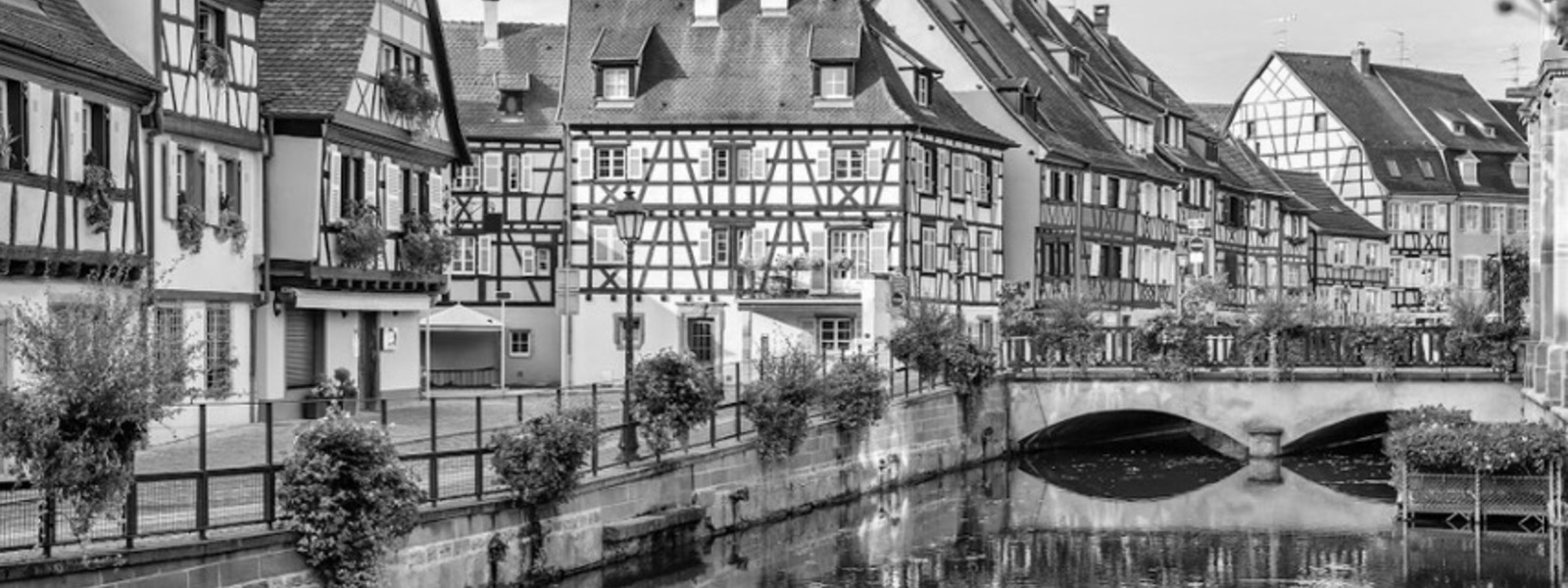 L’Alsace : un territoire au fort caractère, si loin et si proche à la fois. Au carrefour de l’Europe, vous repérez d’abord la flèche de la cathédrale Notre-Dame de Strasbourg, remarquable par la couleur rouge de son grès et le style maniériste de ses sculptures des années 1200. Dans la « ville des routes », vous naviguez ensuite de monument classique – le palais Rohan conçu par Robert de Cotte, le premier architecte de Louis XIV, et abritant le musée des Beaux-Arts – en maisons de pêcheurs, de tanneurs et de meuniers dans le quartier de la Petite France, si pittoresque, ou encore vers les institutions européennes installées autour du bassin de l’Ill. Plus au sud, à l’abri des Vosges et sur la route des vins, c’est Colmar qui dévoile finalement ses riches façades de maisons à colombages. Le musée Unterlinden et son dramatique Retable d’Issenheim constituent l’acmé de ce voyage virtuel à travers l’Alsace.