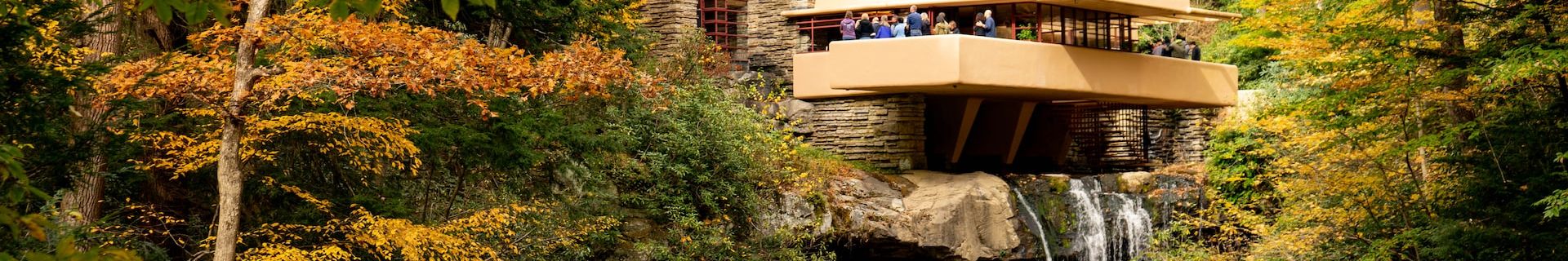 la visite de Fallingwater House, la Maison sur la cascade en Pennsylvanie, la plus célèbre des réalisations de Frank Lloyd Wright